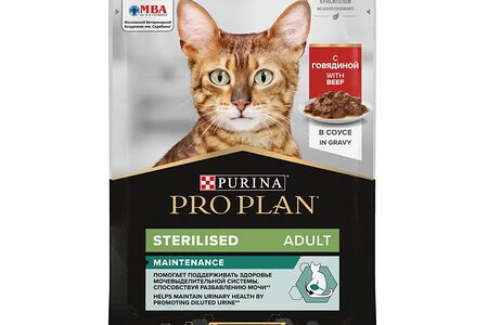 Влажный корм PRO PLAN® Sterilised MAINTENANCE для взрослых стерилизованных кошек, с говядиной в соусе, 85г доставка