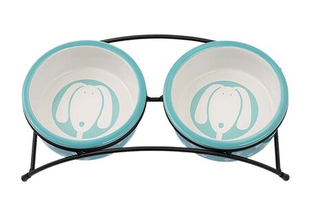 Миска двойная на подставке 12,5см с собачкой голубая доставка