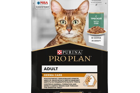 Влажный корм PRO PLAN® DERMA CARE для кошек для здоровья кожи и красоты шерсти, с треской в соусе, 85г доставка