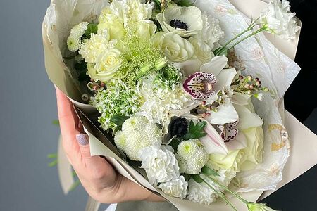 Букет с орхидеей в белых оттенках доставка