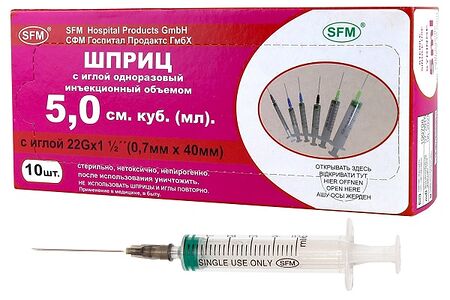 Шприц SFM 10 шт 5 мл 22G 0.7 х 40 мм доставка