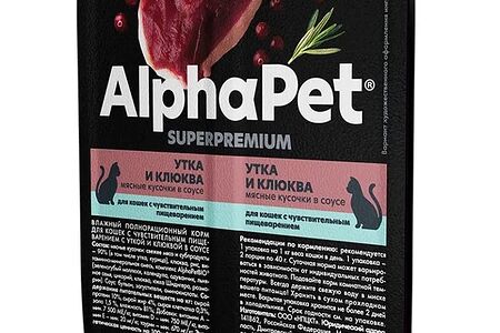 ALPHAPET SUPERPREMIUM для кошек ламистер 80г Чувствительное пищеварение Утка и клюква доставка