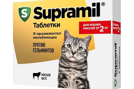 Таблетки от гельминтов Supramil для кошек массой от 2 кг 2 таблетки доставка
