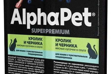 ALPHAPET SUPERPREMIUM для кошек ламистер 80г Чувствительное пищеварение Кролик и черника доставка