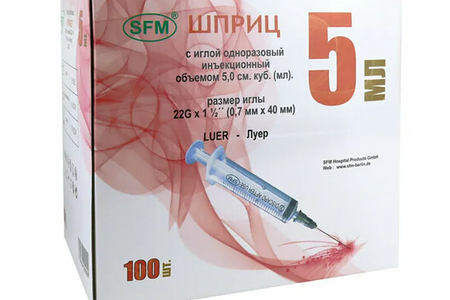 Шприц SFM трехкомпонентный 5 мл 22G 100 шт доставка