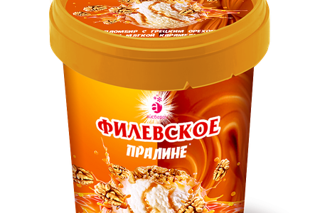 Мороженое Филевское пломбир с грецким орехом и карамелью ведро 550 г доставка