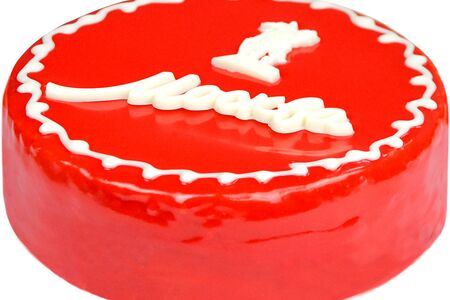 Настоящее лакомство из воздушного безе с фундуком прослоено кремом на основе вареной сгущенки. Поверхность торта декорирована красной блестящей глазурью на основе белого шоколада.