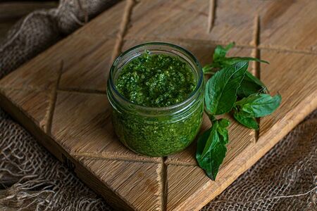 Сведения о составе: базилик, орехи (кешью), масло оливковое. масло подсолнечное, чеснок, соль морская, перец черный молотый, лимонПищевая ценность: 491Условия хранения: 2 - 4 °CСтрана изготовления: РоссияСведения об упаковке: Пакет