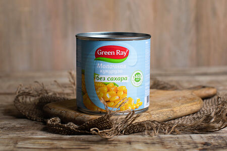 Диетический продукт от отечественного производителя Green Ray – кукуруза молодая без сахара. Изготавливается по оригинальной рецептуре на собственных полях компании в Краснодарском крае. Хрустящие ярко-жёлтые зёрнышки обладают достаточной сладостью, они добавят сочности в любой салат или станут прекрасным дополнением к гарниру. Использование новейшего оборудования и особая технология стерилизации позволяют сохранить в ней все полезные свойства, витамины и минералы.