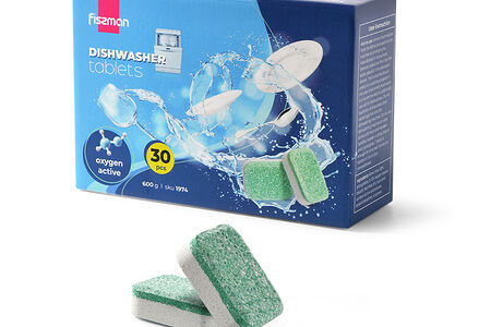 Таблетки для посудомоечных машин FISSMAN для идеальной чистоты вашей посуды. Все необходимые функции в одной таблетке. Эффективная формула обеспечивает прекрасный результат каждый раз. Обладают рядом неоспоримых преимуществ: • Мощная и бережная очистка даже сильно загрязненной посуды. • Эффективное удаление жира, крахмала и нагара. • Полностью смываются с посуды. • Предотвращают помутнение стекла и появление известкового налета. • Содержат ополаскиватель для придания блеска посуде. • Защищают металлическую посуду от потускнения. • Содержат активный кислород для обеззараживания. • Не содержат искусственных отдушек, ароматизаторов или красителей. • Смягчают жесткую воду, предотвращают появление накипи. • Гипоаллергенны.