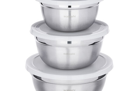 Набор салатников SATOSHI состоит из трех мисок разного размера, выполненных из нержавеющей стали, что продлевает срок службы изделий. Миски снабжены пластиковыми плотно прилегающими крышками. Они являются обязательным атрибутом любой кухни. С их помощью можно готовить блюда, хранить продукты и даже сервировать стол.
