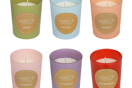 LADECOR Свеча в стеклянном подсвечнике, парафин, 5,5x6,7 см, 6 цветов доставка