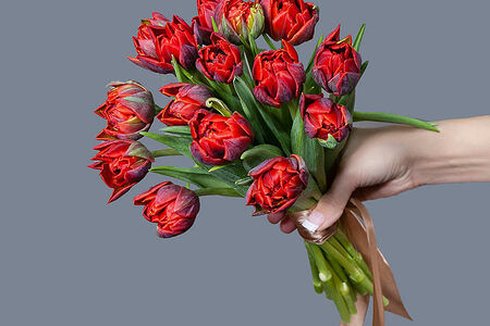 Монобукет, состоящий из 15 ярких и свежих алых тюльпанов, станет прекрасным подарком для любого случая. Каждый цветок символизирует любовь и красоту, а их насыщенный цвет добавляет букету элегантности и изысканности. Тюльпаны аккуратно собраны в единый букет, перевязанный атласной лентой в тон, что придает композиции завершенность и гармонию. Такой монобукет будет долго радовать своей свежестью и дарить прекрасное настроение своему обладателю.