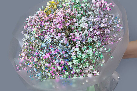 Букет "Магия утра" - это прекрасный выбор для тех, кто ищет что-то особенное и уникальное. Этот букет состоит из гипсофилы цветной, упаковки и ленты, которые создают неповторимую атмосферу.