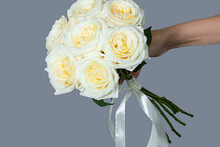 - Оригинальный дизайн - букет состоит из 7 роз и украшен лентой, что делает его неповторимым и запоминающимся.