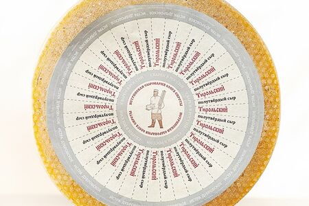 Сведения о составе: Молоко цельное пастеризованное, бактериальная закваска мезофильных и термофильных молочнокислых микроорганизмов, сычужный фермент животного происхождения, соль поваренная пищевая, лизоцим (ферментный препарат из белка куриных яиц)Пищевая ценность: Жиры – 29,8 гр., белки – 22,9 гр., углеводы – 0 гр. Энергетическая ценность: 360,1 Ккал (1506,7 кДж)Назначение: Полутвёрдый сыр. Созревание — 6-8 недель Средний вес головки: 6± кг
