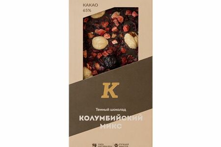 Темный шоколад (какао тертое, тростниковый сахар, какао-масло, эмульгатор: соевый лецитин, натуральный ароматизатор: ваниль), фундук жареный, сублимированные ягоды: клубника, вишня, черная смородина. Содержание какао-продуктов - не менее 65%. Содержит сою. Может содержать следы продуктов, вызывающих аллергию. Кбжу: 593/8,7/47,8/32