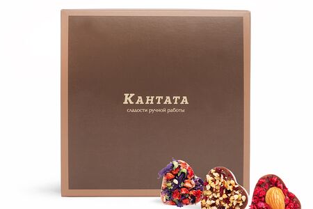 Признание с миндалем: молочный шоколад, ореховая паста из миндаля, малина сублимированная, арахис, вафельная крошка. Содержит орехи, молоко, сою. Может содержать следы продуктов, вызывающих аллергию. Признание с мальвой: белый шоколад, ореховая паста из миндаля, клубника сублимированная, соцветия мальвы. Содержит орехи, молоко, сою. Может содержать следы продуктов, вызывающих аллергию. Признание с фундуком и вишней: молочный шоколад, ореховая паста из фундука, фундук жареный дробленый, кокосовая стружка, вишня сублимированная. Содержит орехи, молоко, сою. Может содержать следы продуктов, вызывающих аллергию (9 шт.)
