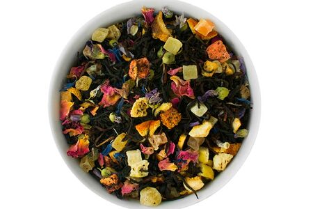 Состав: Купаж цейлонского, индийского и китайского чёрного чая, цукаты (ананас, папайя, манго), натуральный ароматизатор, цедра апельсина, лепестки розы, цветы мальвы, василёк, кусочки клубники, абрикоса, цедра лимона. Большое количество добавок в чае позволяет получить уникальную мелодию вкуса, напоминающую фруктовый коктейль с ярким абрикосово-клубничным звучанием.