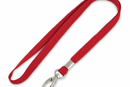 Лента для бейджа красного цвета с карабином-клешней. Лента изготовлена из репсового материала. Длина 90 см, ширина 10 мм. Используется для фиксации бейджа или пропуска.