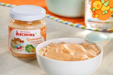 Мясорастительные пюре расширяют вкусовые горизонты малыша, знакомят его с привычными нам сочетаниями продуктов, а также снабжают организм крохи множеством витаминов и микроэлементов. Первый прикорм крохи должен быть натуральным, безопасным и качественным. Наш партнер производит детское питание в экологически чистом районе Московской области, строго по ГОСТ и из отборных ингредиентов. Пюре не содержат ГМО, химических консервантов, красителей, ароматизаторов и усилителей вкуса. Это абсолютно натуральный продукт, в разработке рецептур которого принимали участие специалисты Института питания РАМН. Пюре, сочетающие в себе мясо и овощи, вводятся в прикорм в последнюю очередь: в них встречаются небольшие мягкие кусочки размером до 1 мм, чтобы ребёнок учился не просто глотать их, но и пережевывать первыми зубками. Все мясные пюре МясновЪ ВКУСНЯШКА приготовлены без соли, чтобы ребенок познакомился с чистым, естественным вкусом мяса.