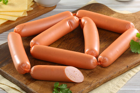 Необыкновенно сочные сосиски из трех видов мяса – говядины, свинины и птицы - с «соусом» внутри: при откусывании горячей сосиски вкрапления сыра образуют густые капли, придавая продукту красивый внешний вид и обогащая вкус сырным оттенком. Отличная начинка для домашнего хот-дога.