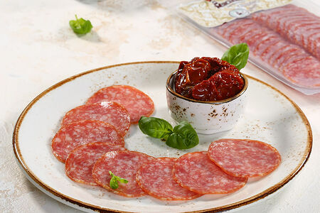 Итальянская кухня – одна из самых популярных в мире. Но кто сказал, что превосходные мясные деликатесы можно найти только на Аппенинском полуострове? Приходите за ними в МясновЪ! Сырокопченая колбаса Прошутто создана на основе традиционных рецептов итальянских колбас и деликатесов. И её вкус моментально «переносит» в солнечную Италию, где к еде относятся как к настоящему произведению искусства. Прошутто от МясновЪ – нежная, тает во рту и неизменно получает положительные отзывы гостей!