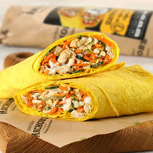 В центр тонкого и эластичного лаваша заворачиваем нежнейшую буженину, свежие томаты и красный лук, а также морковь по-корейски. Начинка приправлена пряно-горчичным соусом, приготовленным на основе майонеза Провансаль МясновЪ БУФЕТ и зернёной горчицы. Пикантности и яркости вкусу добавляют морская соль и молотый черный перец.