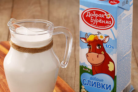Натуральные ультрапастеризованные сливки ГОСТ 10% жирности с однородной, нежной текстурой в большой упаковке.