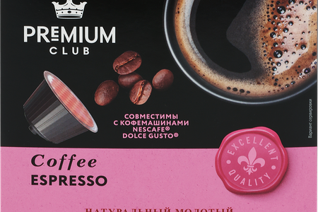Кофе в капсулах PREMIUM CLUB Espresso натуральный жареный молотый, 10шт доставка