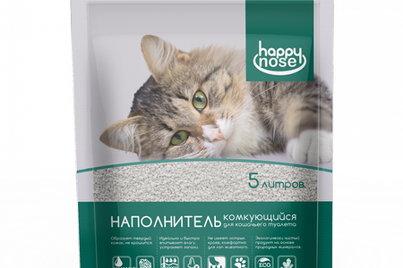 Наполнитель Happy Nose для кошачьего туалета, комкующийся 5л / 2,2 кг доставка