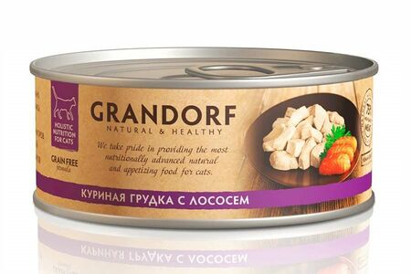Корм консервированный Grandorf для кошек, куриная грудка с лососем доставка