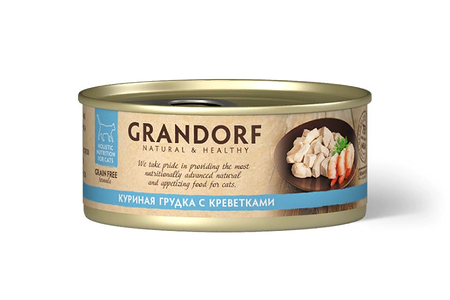 Консервы Grandorf для кошек куриная грудка с креветками доставка
