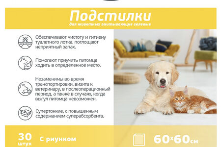 Подстилки для собак и кошек Happy Nose впитывающие, гелевые, 60х60 (30 шт) доставка