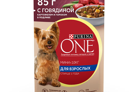 Влажный корм Purina ONE Мини Взрослая для собак мелких пород старше 1 года, с говядиной, картофелем и горохом в подливе 85 г доставка