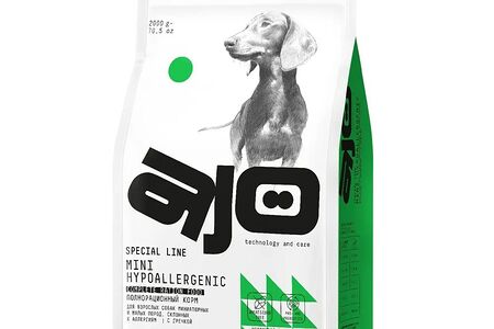 Сухой корм для собак малых пород при аллергии и проблемах пищеварения Индейка и Гречка AJO Dog Mini Hypoallergenic доставка