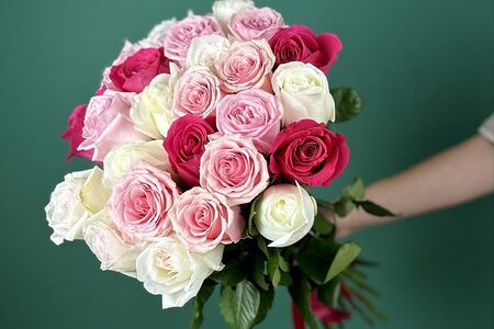 Букет цветов из 25 пионовидных и сингл роз Эквадор (микс) доставка