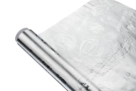Фольга пищевая с тиснением алюминиевая VETTA 29 см х 10 м в футляре подходит для запекания блюд в духовке или на гриле в собственном соку, а также для выпекания пирогов и десертов. Прочная, выдерживает высокие температуры. Имеет декоративное тиснение и может использоваться в качестве упаковки для готовых блюд. Отлично сохраняет свежесть продуктов, а также не позволяет пище быстро остывать, поэтому горячую еду удобно брать в дорогу, предварительно упаковав в фольгу.