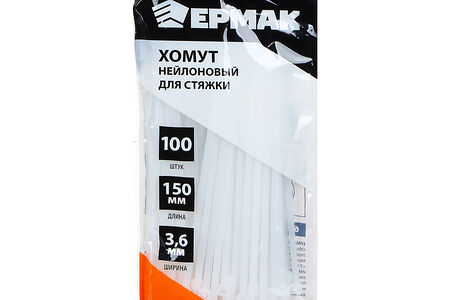 Ермак хомут нейлоновый для стяжки 3,6х150мм, белый 100шт/уп доставка