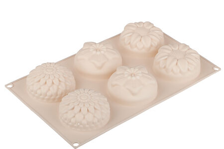 Силиконовая форма VETTA «Цветы» с шестью ячейками удобна для приготовления мини-кексов, пирожных, капкейков, сырников, а также фигурного желе. Изделия в виде цветов получаются красивыми и аппетитными, не прилипают к стенкам формы, легко извлекаются. Форма изготовлена из безопасного пищевого силикона, имеет диапазон рабочих температур от -40 до 240 градусов, поэтому ее можно использовать в духовом шкафу, микроволновой печи, морозильной камере и мыть в посудомоечной машине.