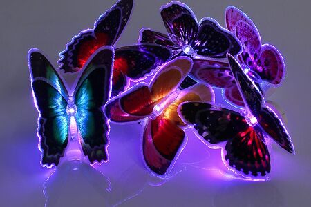 Что может быть волшебнее и загадочнее, чем сверкающие огоньки в ночном саду? Фигурка на стержне 54 см INBLOOM «Бабочка четыре крыла» станет необычным украшением приусадебного участка. Яркая разноцветная бабочка будет красиво смотреться на цветочной клумбе как днем, так и ночью. У основания фигурки имеется рычажок включения-выключения подсветки. Элемент питания – LR44х3. 6 цветов в ассортименте.