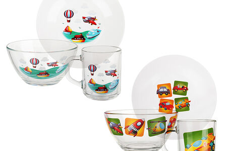 Набор для завтрака ОСЗ «Веселый транспорт» станет любимой посудой вашего ребенка, и малыш будет с нетерпением ждать завтрака каждое утро. В набор входят: салатник 12,7 см, тарелка 19,6 см и кружка 200 мл. Все предметы выполнены из стекла повышенной прочности и имеют единый стиль оформления с симпатичным рисунком в виде медвежонка. Рисунок термостойкий, не стирается и не выцветает. Посуда в подарочной коробке может стать отличным подарком для ребенка. 2 дизайна в ассортименте.