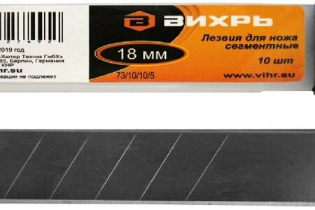 Лезвия подходят как к ножам Вихрь, так и к ножам других брендов с шириной лезвия 18 мм.ширина: 18 мм, 10 штук, пластиковый бокс