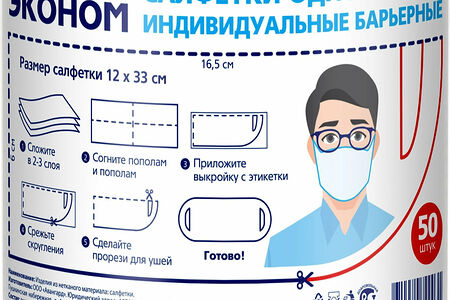 Салфетка для масок Smart ЭКОНОМ - это небольшой рулон нетканого материала, с помощью которого самостоятельно делают одноразовые маски. Рулон рассчитан на изготовление 50-и масок стандартного размера. Преимущества Простая и понятная инструкция на русском языке. Барьерная структура защищает от микробов и вирусов. Быстрое изготовление маски "на ходу" без шитья. Область применения Одноразовые салфетки для масок используются в качестве защиты от микробных и бактериальных угроз. Рулончик салфеток удобно носить с собой в сумке или кейсе и при необходимости изготовить маску в течение пары минут.