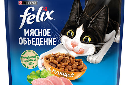 Сухой корм Felix Мясное объедение для взрослых кошек, с курицей 1,3 кг доставка