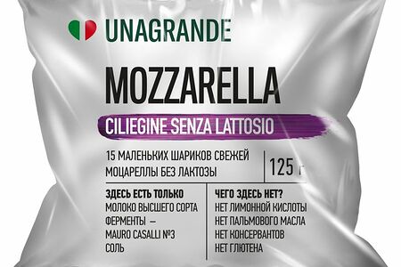 Сыр Unagrande Моцарелла в воде Чильеджина без лактозы 45%, 125г доставка