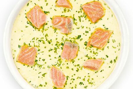Срок годности в днях: 14Состав: Бульон рыбный (вода питьевая, каркас (кости) форели радужной, лук репчатый, петрушка, соль, лавровый лист, перец черный горошек, бульон рыбный концентрат, картофель, морковь, филе форели радужной замороженное, сыр плавленый (содержит молоко), крем на растительных маслах (содержит следы сои), лук репчатый, укроп.Пищевая ценность: Калорийность: 66.8Белки: 5.3Жиры: 3.2Углеводы: 4.2Страна изготовления: РоссияПроизводитель: Шеф Перекресток