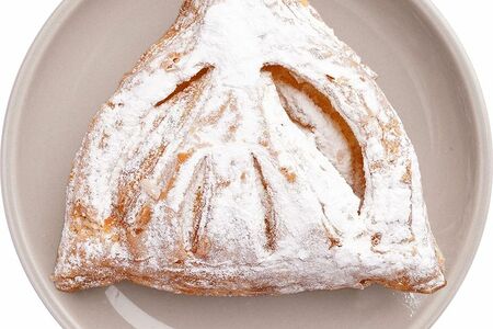 Срок годности в днях: 1Состав: Мука пшеничная хлебопекарная высшего сорта, творог, маргарины (рафинированные дезодорированные растительные масла, вода, эмульгаторы (Е472с, Е475, Е471, Е433, лецитин соевый), соль, консерванты (сорбиновая кислота, бензоат натрия), краситель каротины, ароматизатор, регулятор кислотности лимонная кислота), вода питьевая, продукты яичные, сахар, концентрат пищевой (сахар, загустители: Е1414, Е1442, Е401, Е412, масло пальмовое рафинированное, сироп глюкозы, соль (агент антислеживающий Е536), стабилизатор ацетат кальция, агент антислеживающий Е341, ароматизаторы, краситель каротины), спред растительно-жировой (растительные жиры и масла, сахар, эмульгаторы: Е472е, лецитин рапсовый, сыворотка молочная сухая, декстроза, соль, сухое обезжиренное молоко, антиокислитель аскорбиновая кислота), дрожжи хлебопекарные, соль, эмульгатор Е482, антиокислитель аскорбиновая кислота, вещество для обработки муки Е920. Продукт может содержать следы орехов, арахиса, кунжута и продукты их переработки.Пищевая ценность: Калорийность: 310Белки: 7Жиры: 19Углеводы: 29Страна изготовления: РоссияПроизводитель: Пекарня Перекрёсток