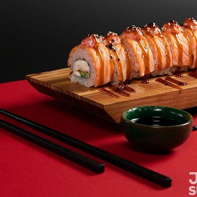Нежный лосось, сливочный сыр, огурчики. Опаленный ролл