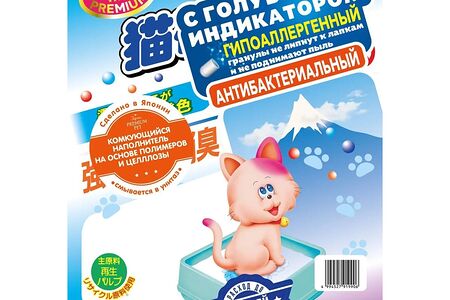 Каждая гранула многослойна. Японский антибактериальный влагопоглощающий полимер быстро и эффективно впитывает влагу, другой (СРС)– уничтожает источник неприятных запахов – бактерии. Комкуется благодаря целлюлозной клейковине, комок становится голубого цвета, не окрашивая лапы и стены лотка. Каждая гранула обработана катехином японского чая, имеющим прекрасные дезодорирующие свойства и горький вкус (безопасное отучение от поедания наполнителя).